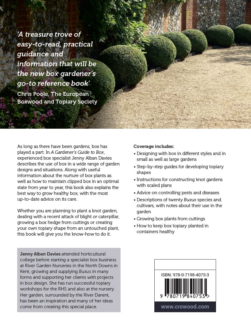 As long as there have been gardens, box has played a part. In A Gardener’s Guide to Box, experienced box specialist, Jenny Alban Davies, describes the use of box in a wide range of garden designs and situations. Along with useful information about the nurture of box plants as well as how to maintain clipped box in an optimal state from year to year, this book also explains the best way to grow healthy box, with the most up-to-date advice on its care. Topics include: designing with box in different styles and in small as well as large gardens; descriptions of twenty Buxus species and cultivars, with notes about their use in the garden; how to keep box topiary planted in containers healthy, and advice on controlling pests and diseases. Whether you are planning to plant a knot garden, dealing with a recent attack of blight or caterpillar, growing a box hedge from cuttings or creating your own topiary shape from an untouched plant, this book will give you the know-how to do it.