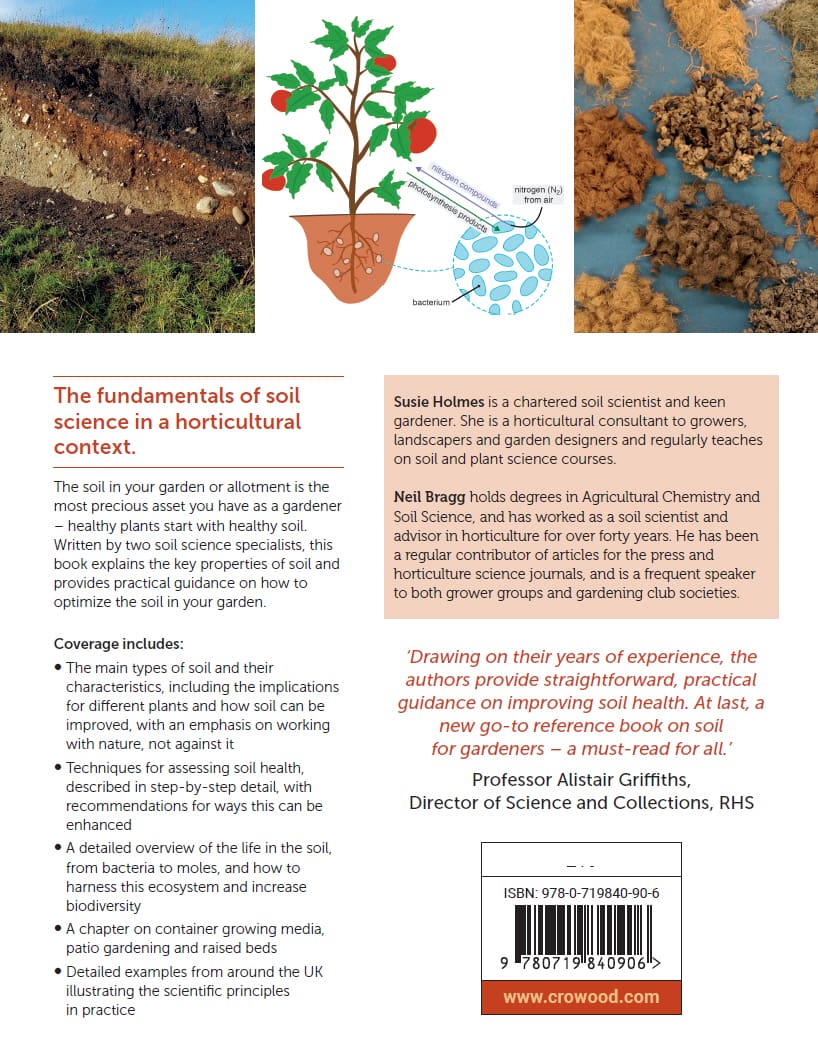 The soil in your garden or allotment is the most precious asset you have as a gardener – healthy plants start with healthy soil. Written by two soil science specialists, this book explains the fundamentals of soil science in a horticultural context and provides practical guidance on how to optimize the soil in your garden. The main types of soil and their key characteristics are discussed, including the implications for different plants and how the soil can be improved, with an emphasis on working with nature, not against it. Techniques for assessing soil health are described in step-by-step detail, with recommendations for ways this can be enhanced. A detailed overview of the life in the soil, from bacteria to moles, shows how to harness this ecosystem and increase biodiversity. There is a chapter on container growing media tackles patio gardening and the use of raised beds. Finally, detailed examples from around the UK are provided to illustrate the scientific principles in practice.