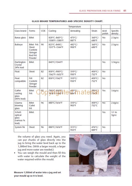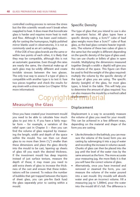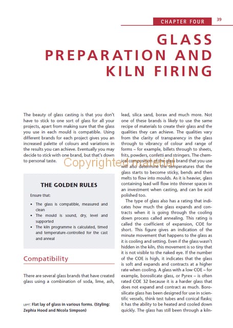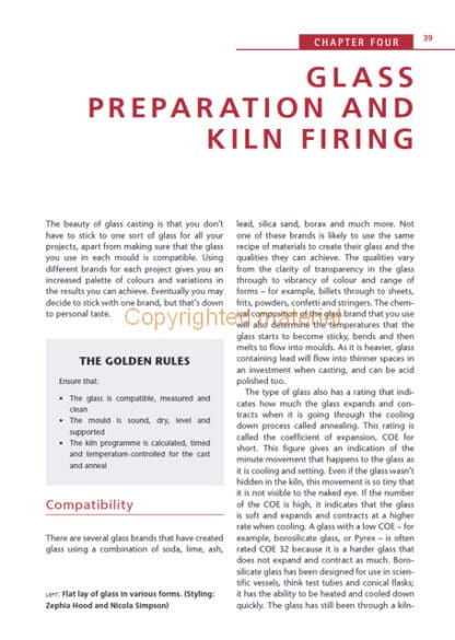 Glass casting is an exciting and versatile process involving chunks of molten glass melted into a mould, where it solidifies. This practical book explains the glass casting process, from the initial search for inspiration through to simple and then more complex casting. With step-by-step instructions and supporting photographs, it is an accessible and thorough account of this challenging and beautiful process. Topics covered include: advice on kilns and studio equipment; step-by-step projects in open casting, lost-wax casting, part-mould making, burn-out moulds and core casting; ideas for experimentation to increase the scale of your work, explore surface pattern and use other materials; instruction on de-moulding and finishing, and further tips on reusing materials in the studio.