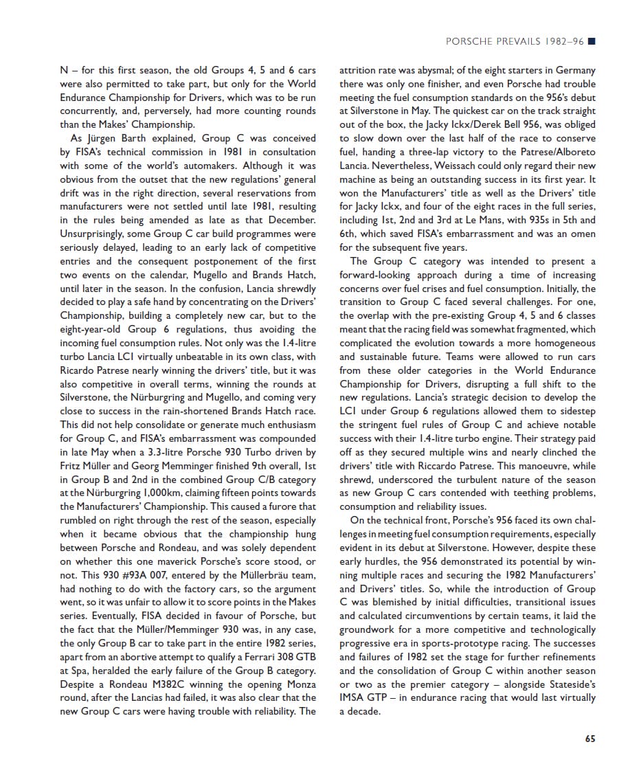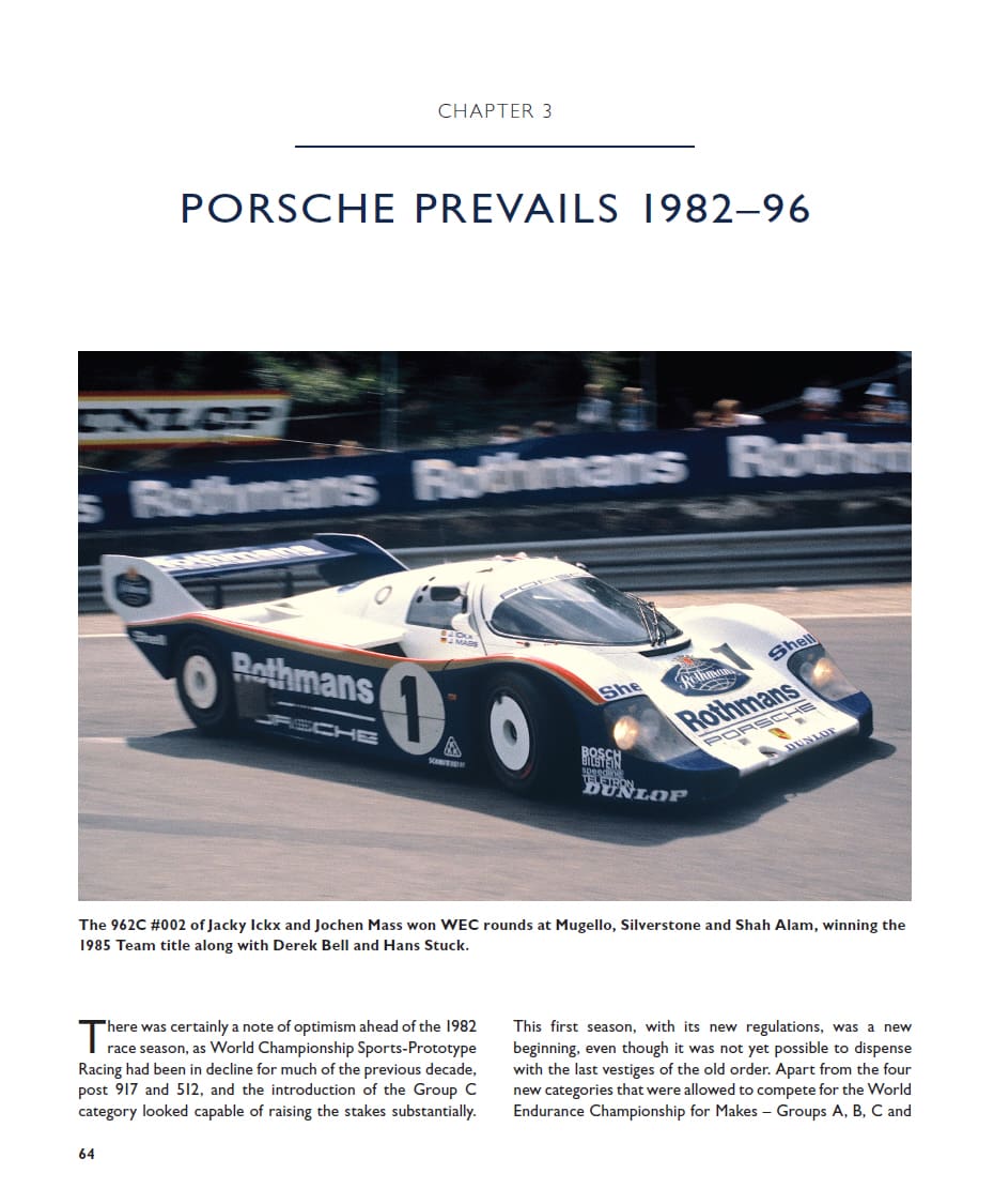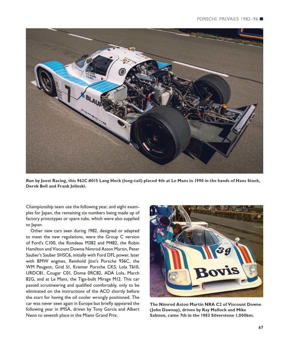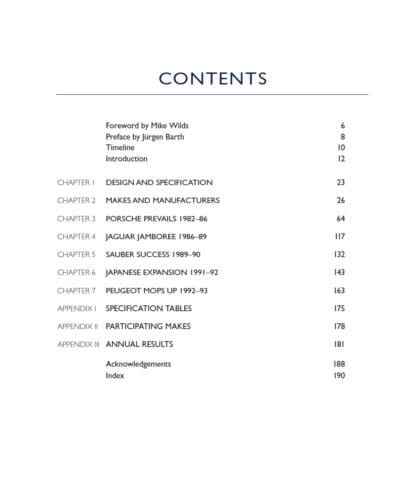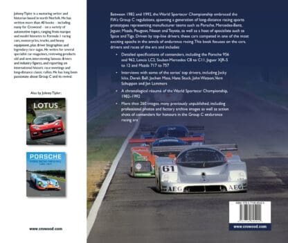 Between 1982 and 1992, the World Sportscar Championship embraced the FIA’s Group C regulations, spawning a generation of long-distance racing sports prototypes representing manufacturer teams such as Porsche, Mercedes-Benz, Jaguar, Mazda, Peugeot, Nissan and Toyota, as well as a host of specialists such as Spice and Tiga. Driven by top-line drivers, these cars competed in one of the most exciting epochs in the annals of endurance racing. This book focuses on the cars, drivers and races of the era.