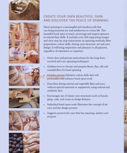 Hand spinning is a peaceful, wholesome and creative craft that can bring immense joy and satisfaction to a busy life. This beautiful book explains how to spin unique yarn using natural raw materials such as fleece, flax and silk. It aims to teach, encourage and inspire spinners to extend their skills and uncover the mystique surrounding the long draw, the hallmark skill of accomplishment in hand spinning. It includes over 200 supporting images and clear step-by-step instructions on spinning methods, fibre preparation, colour skills, dyeing, yarn structure, art and yarn design. It will bring inspiration and pleasure to all spinners, regardless of experience or expertise.