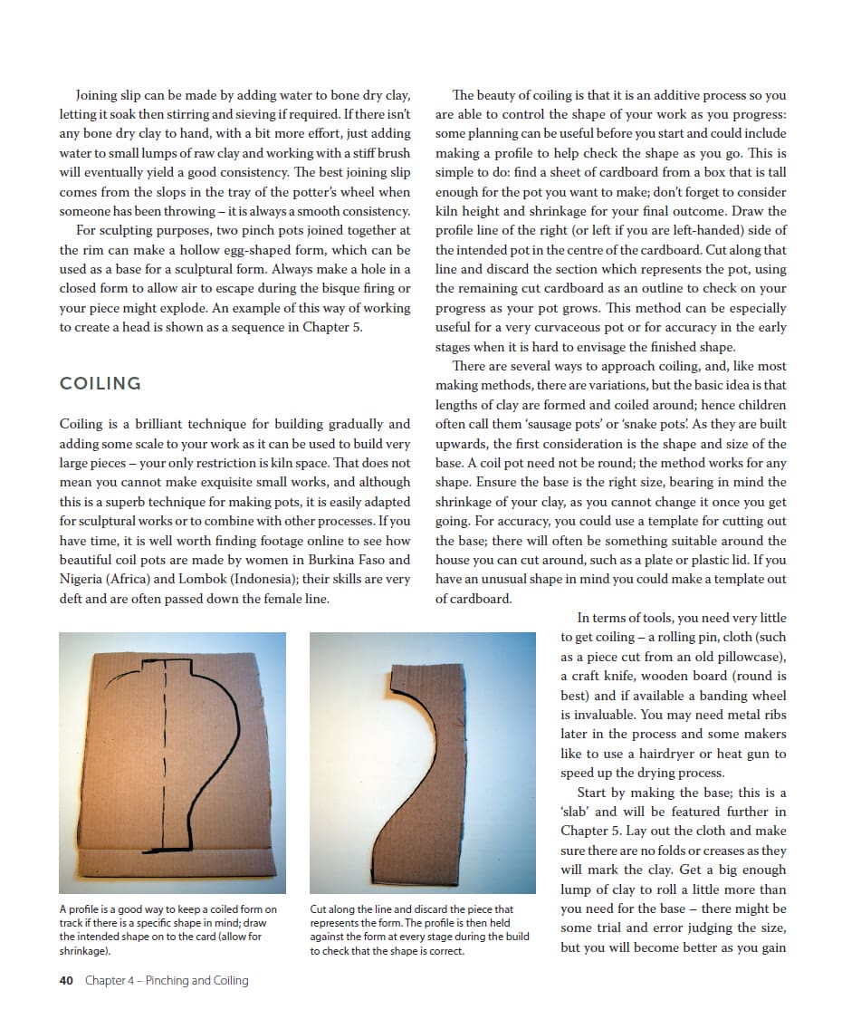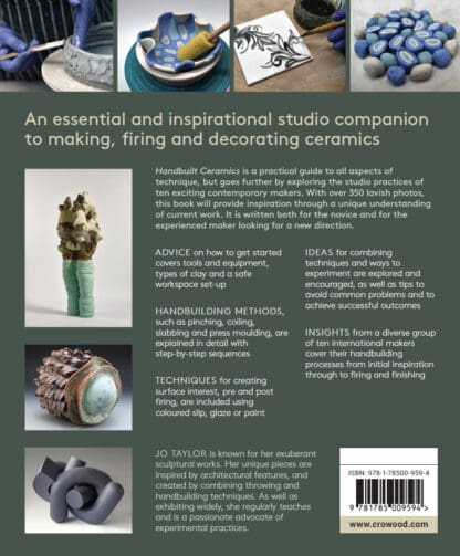 Handbuilt Ceramics is a practical guide to all aspects of technique, but goes further by exploring the studio practices of ten exciting contemporary makers. Advice is given on how to get started and information on tools and equipment, types of clay and a safe workspace set-up. Handbuilding methods, such as pinching, coiling, slabbing and press moulding, are explained in detail with step-by-step sequences. Techniques for creating surface interest, pre and post firing, are included using coloured slip, glaze or paint. Ideas for combining techniques and ways to experiment are explored and encouraged, as well as tips to avoid common problems and to achieve successful outcomes. With over 350 lavish photos, this book will provide inspiration through a unique understanding of current work. It is written both for the novice and for the experienced maker looking for a new direction.
