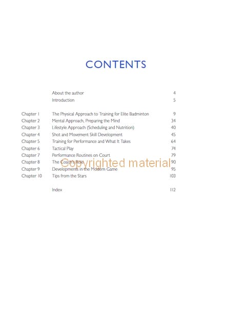 Aimed at all aspiring badminton players, High Performance Badminton is packed with advice on how to improve your game, including an extensive section of tips from star players. Covering both the physical and mental approach, and nutrition, and with comprehensive sections on skill development, training, and tactics, this will be invaluable reading for players and coaches.