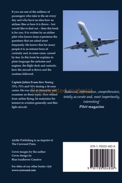 If you are one of the millions of airline passengers who take to the air daily and have no idea how an aeroplane flies or how it is flown – but would like to find out – then this is the book for you. It is written by an airline pilot who knows from first-hand experience those questions that are asked most frequently. He knows that for many it is an interest born of curiosity, and in some cases, caused by fear. In this revised third edition Julien Evans explains, in straightforward everyday language, about the airframe and the engines, the flight deck and the controls, how the aeroplane is flown and the routines followed. In fact it explains everything the average passenger may wish to know.