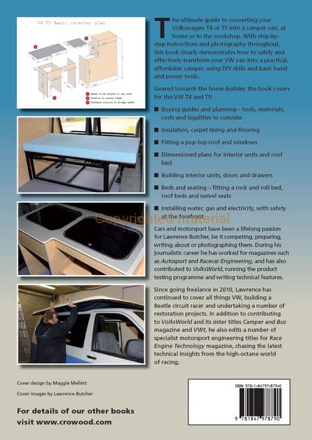 The ultimate guide to converting your Volkswagen T4 or T5 into a camper van, at home or in the workshop. With step-by-step instructions and photography throughout, this book clearly demonstrates how to safely and effectively transform your VW van into a practical, affordable camper using DIY skills, and basic hand and pwoer tools. Geared towards the home-builder, the book covers: buying guides and planning; tools, materials, costs and legalities; insulation, carpet lining and flooring; fitting a pop-top roof and windows; building interior units, doors and drawers; fitting a rock and roll bed, roof beds and swivel seats, and finally, installing water, gas and electricity, with safety at the forefront.