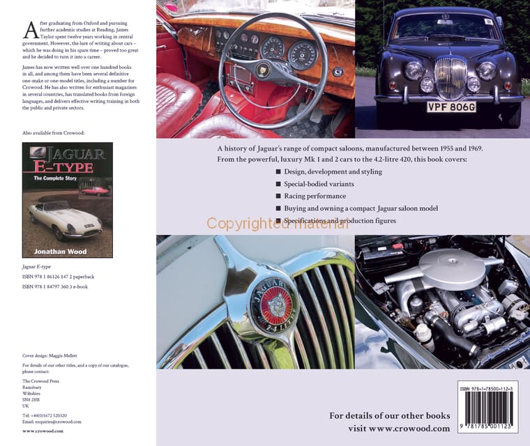 A history of all four generations of compact Jaguar, and their Daimler equivalents, tracing the gradual development of Sir William Lyons’ original idea over a period between 1955 and 1969. From the powerful, luxury MK 1 and 2 cars to the 4.2-litre 420, this book covers design, development and styling; special-bodied variants; racing performance; buying and owning a compact Jaguar saloon model and, finally, specifications and production figures.
