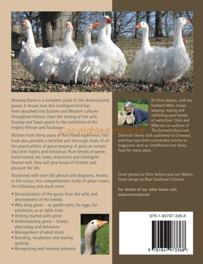 Dr Chris Ashton, with her husband Mike, enjoys keeping, rearing and exhibiting pure breeds of waterfowl. Chris and Mike are co-authors of The Domestic Duck and Domestic Geese, both published by Crowood, and they have contributed articles to magazines such as Smallholder and Fancy Fowl for many years.