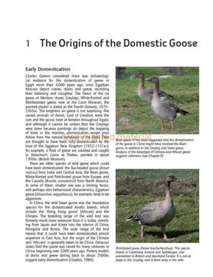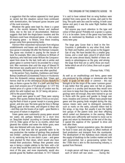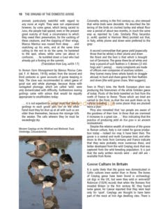 Domestication of the goose from the wild, and development of the breeds.