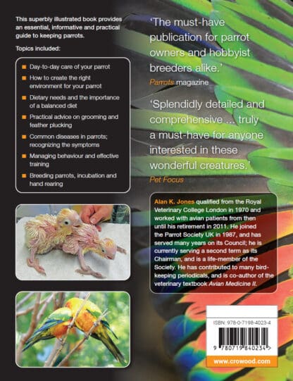 Alan Jones has had a lifelong interest in birds. After qualifying as a Veterinary Surgeon from the Royal Veterinary College London in 1970, he established his own practice in West Sussex in 1985 and has worked ever since with avian patients. He joined the International Association of Avian Veterinarians in 1987 and has been a regular attendee and presenter at AAV Conferences in Europe and the USA. He is currently Vice-Chairman of the Parrot Society UK. Alan has contributed to many bird-keeping periodicals, and is co-author of the veterinary textbook Avian Medicine II.