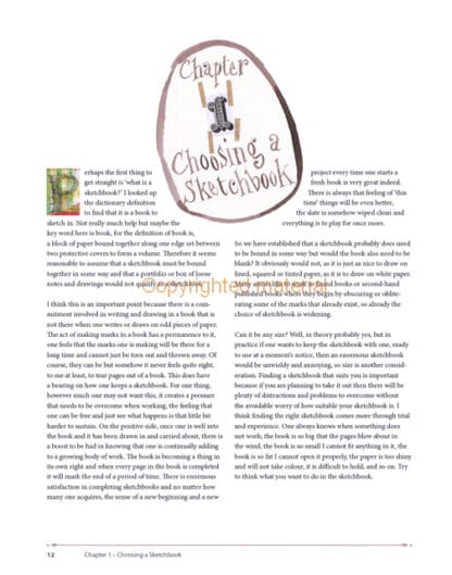 Artists use sketchbooks for a myriad of purposes – to capture a moment, to develop an idea, to record a scene… This book advises on how to enjoy keeping a sketchbook and how to make the most of their use. With practical examples throughout, it is a beautiful and valuable guide that will inspire you to pick up a pencil or brush, mark the page and start your own visual diary. Topics covered include looking at different types of sketchbooks – their size, theme and purpose; ideas for drawing and painting in a sketchbook inside, outside or while travelling and advice on professional sketchbooks and scrapbooks.