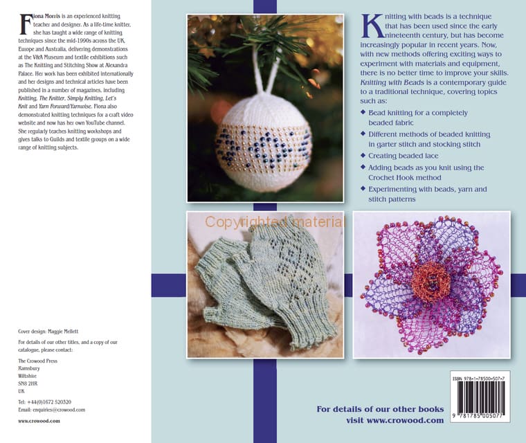 Knitting with beads is a technique that has been used since the early nineteenth century, but has become increasingly popular in recent years. Now, with new methods offering exciting ways to experiment with materials and equipment, there is no better time to improve your skills. Knitting with Beads is a contemporary guide to a traditional technique covering a variety of different techniques, with beads threaded onto the yarn, as well as beads applied as you go along. these methods are developed further in a chapter on experimenting with year, beads and different stitch patterns, which offers readers the opportunity to develop their own ideas for using beads in their knitting. The projects section at the end of the book includes a wide range of items that allows readers to put these techniques into practice.