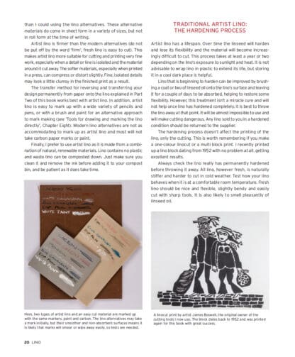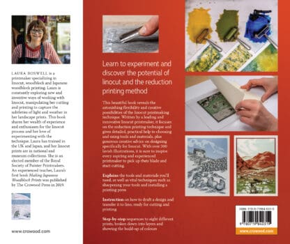 Laura Boswell is a printmaker specializing in linocut, woodblock and Japanese woodblock printing. Laura is constantly exploring new and inventive ways of working with linocut, manipulating her cutting and printing to capture the subtleties of light and weather in her landscape prints. This book shares her wealth of experience and enthusiasm for the linocut process and her love of experimenting with the technique. Laura has trained in the UK and Japan, and her linocut prints are in national and museum collections. She is an elected member of the Royal Society of Painter Printmakers. An experienced teacher, Laura’s first book Making Japanese Woodblock Prints was published by The Crowood Press in 2019.
