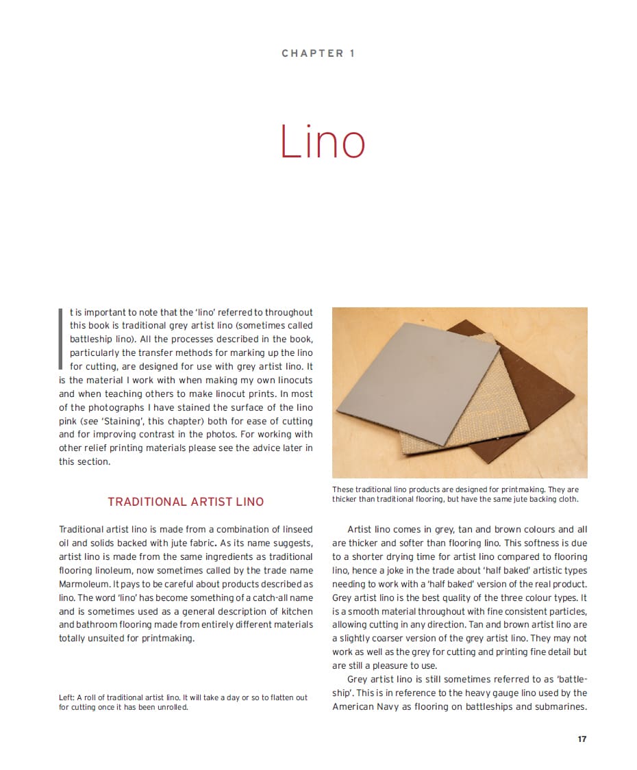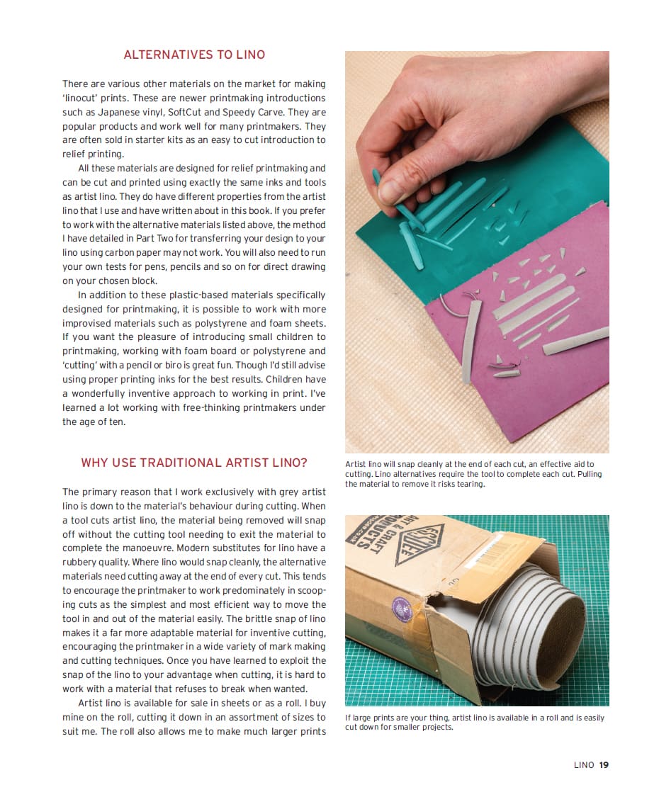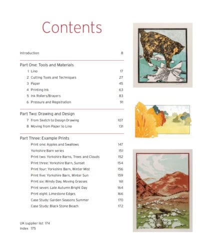 This beautiful book reveals the astonishing flexibility and creative possibilities of the linocut printmaking technique. Written by a leading and innovative linocut printmaker, it focuses on the reduction printing technique and gives detailed, practical help to choosing and using tools and materials, plus generous creative advice on designing specifically for linocut. With over 300 lavish illustrations, it is sure to inspire every aspiring and experienced printmaker to pick up their blade and start cutting. Divided into three parts, this book introduces the reader to the infinite possibilities of working with traditional artist’s lino. Explains the tools and materials you’ll need, as well as vital techniques such as sharpening your tools and installing a printing press. There is instruction on how to draft a design and transfer it to lino, ready for cutting and printing. Finally, there are step-by-step sequences to eight different prints, broken down into layers and showing the build-up of colours.