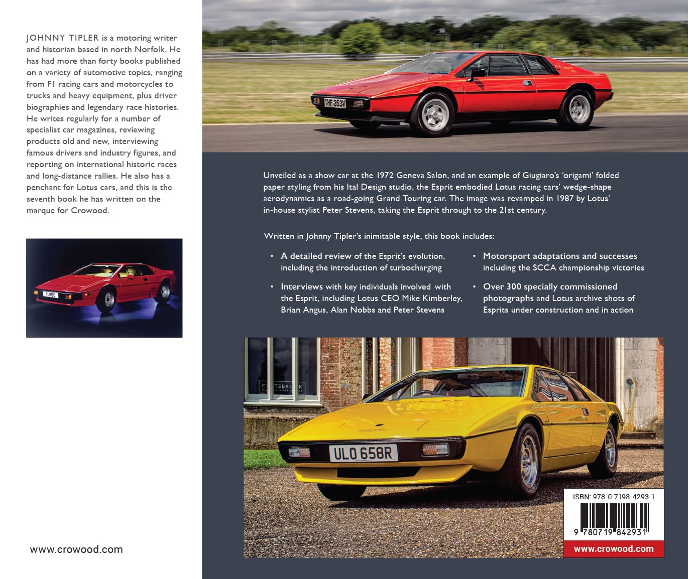 This new book by Johnny Tipler examines the Esprit's evolution and features interviews with key people involved at various times during the car's history. A super effort backed up by some great photography.