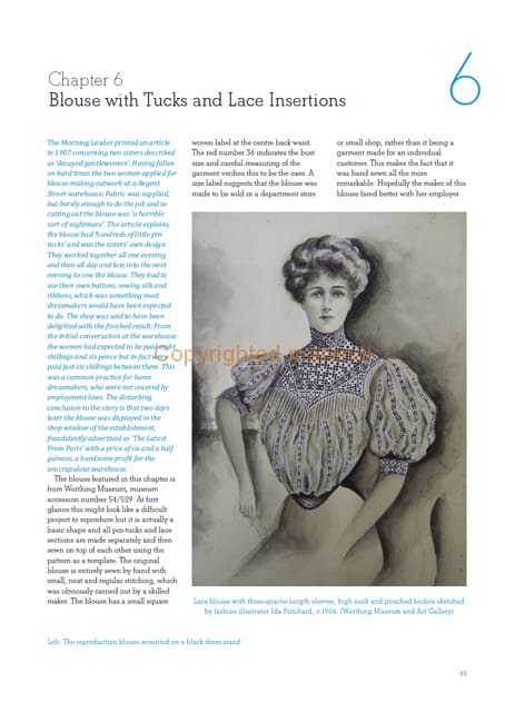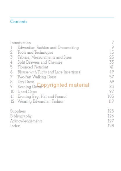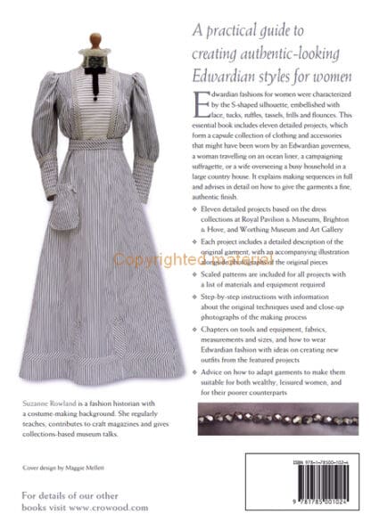 Edwardian fashions for women were characterized by the S-shaped silhouette, embellished with lace, tucks, ruffles, tassels, frills and flounces. This essential book includes eleven detailed projects, which form a capsule collection of clothing and accessories that might have been worn by an Edwardian governess, a woman travelling on an ocean liner, a campaigning suffragette, or a wife overseeing a busy household in a large country house. It explains making sequences in full and advises in detail on how to give the garments a fine, authentic finish.