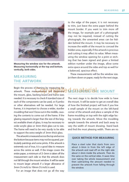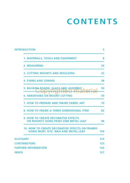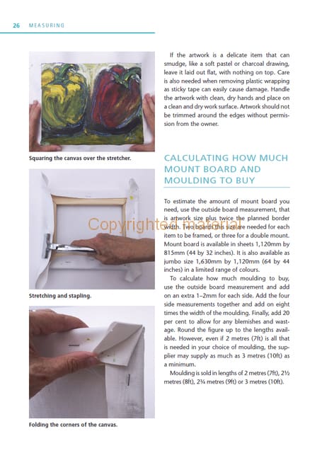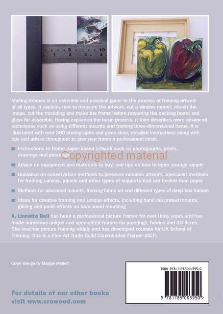 Making Frames is an essential and practical guide to the process of framing artwork of all types. It explains how to measure the artwork, cut a window mount, attach the image, cut the moulding and make the frame before preparing the backing board and glass for assembly. Having explained the basic process, it then describes more advanced techniques such as using different mounts and framing other three-dimensional items. It is illustrated with over 300 photographs and gives, clear detailed instructions along with tips and advice throughout to give your frame a professional finish.