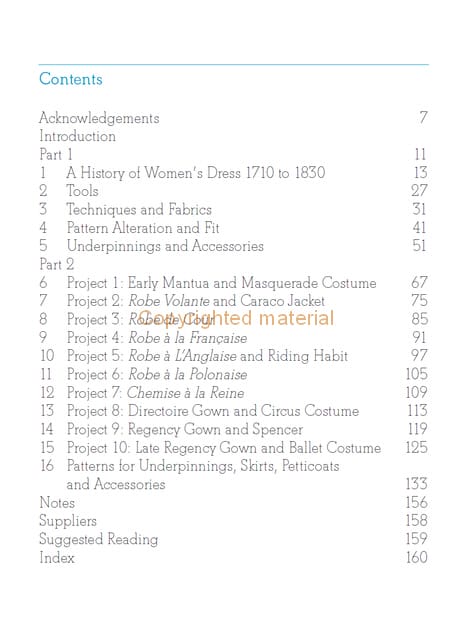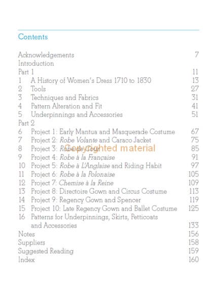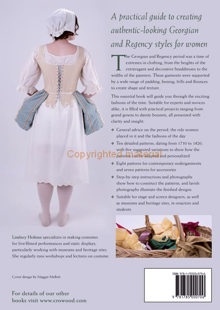 The Georgian and Regency period was a time of extremes in clothing, from the heights of the extravagant and decorative headdresses to the widths of the panniers. These garments were supported by a wide range of padding, boning, frills and flounces to create shape and texture. This essential book will guide you through the exciting fashions of the time. Suitable for experts and novices alike, it is filled with practical projects ranging from grand gowns to dainty bonnets, all presented with clarity and insight. There are ten detailed patterns, dating from 1710 to 1820 with five suggested variations to show how the patterns can be adapted; eight patterns for contemporary undergarments and seven patterns for accessories. Step-by-step instructions and photographs show how to construct the patterns and lavish photographs illustrate the finished designs.