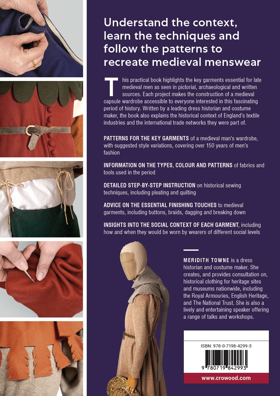 This practical book highlights the key garments essential for late medieval men as seen in pictorial, archaeological and written sources. Each project makes the construction of a medieval capsule wardrobe accessible to everyone interested in this fascinating period of history. Written by a leading dress historian and costume maker, the book also explains the historical context of England’s textile industries and the international trade networks they were part of.
