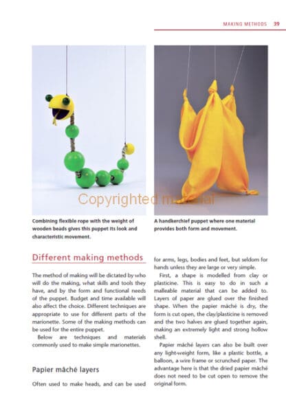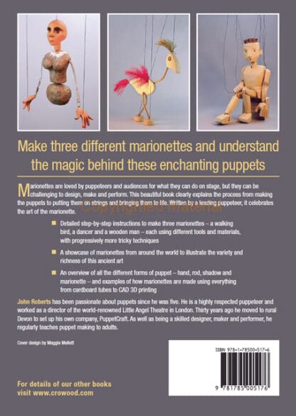 Marionettes are loved by puppeteers and audiences for what they can do on stage, but they can be challenging to design, make and perform. This beautiful book clearly explains the process from making the puppets to putting them on strings and bringing them alive. Detailed step-by-step instructions are given to make three marionettes – a walking bird, a dancer and a wooden man – each using different tools and materials, with progressively more tricky techniques. Written by a leading puppeteer, it celebrates the art of the marionette.
