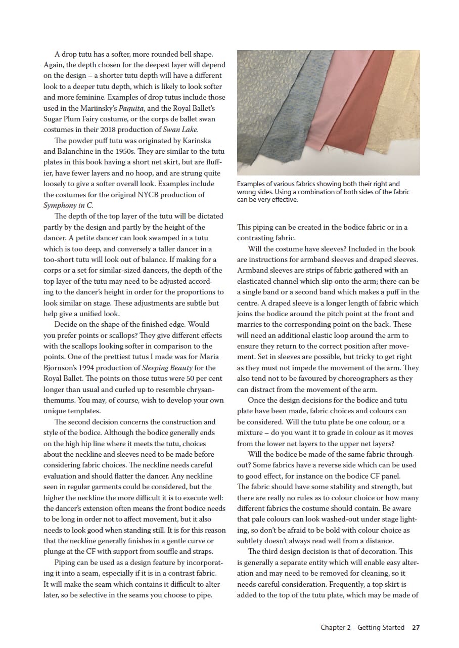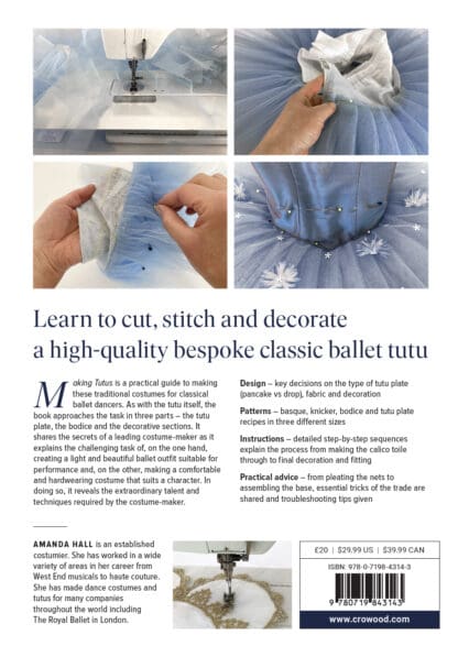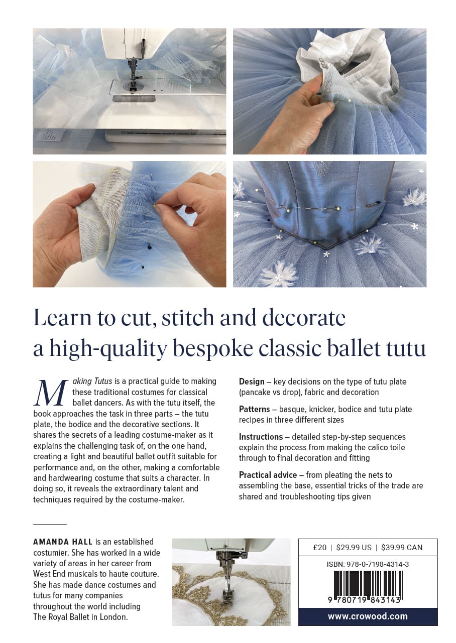 Making Tutus is a practical guide to making these traditional costumes for classical ballet dancers. As with the tutu itself, the book approaches the task in three parts – the tutu plate, the bodice and the decorative sections. It shares the secrets of a leading costume-maker as it explains the challenging task of, on the one hand, creating a light and beautiful ballet outfit suitable for performance and, on the other, making a comfortable and hardwearing costume that suits a character. In doing so, it reveals the extraordinary talent and techniques required by the costume-maker.