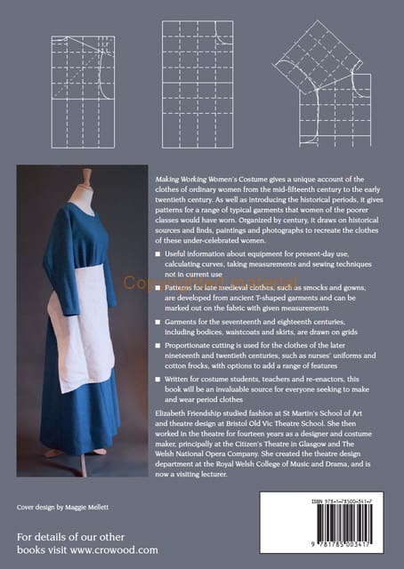 Making Working Women’s Costume gives a unique account of the clothes of ordinary women from the mid-fifteenth century to the early twentieth century. As well as introducing the historical periods, it gives patterns for a range of typical garments that women of the poorer classes would have worn. Organized by century, it draws on historical sources and finds, paintings and photographs to recreate the clothes of these under-celebrated women.