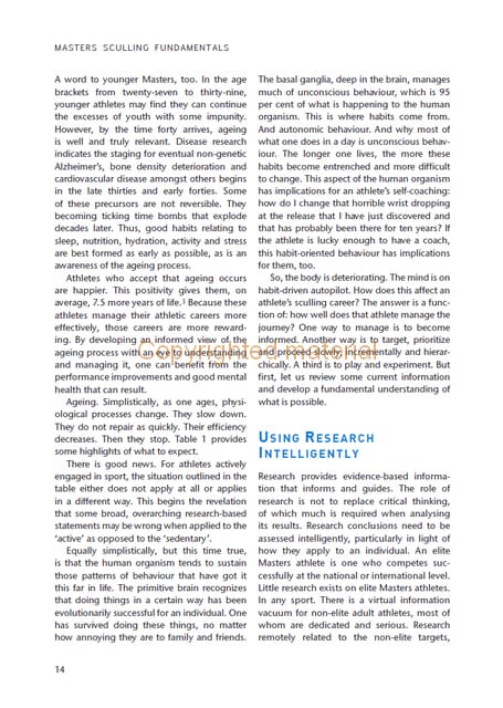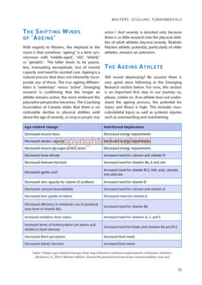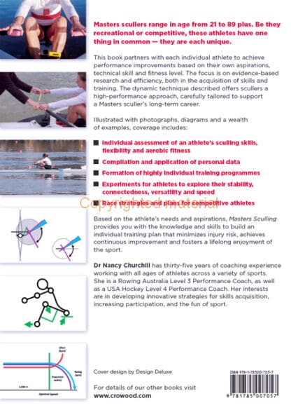 Masters scullers range in age from Grade AA (21 in the US) or Grade A (27 in the UK) to Grade M (89 plus). Although diverse in age, these athletes all have one thing in common – they are each unique. This book partners with each individual athlete to achieve performance improvements based on their own aspirations, technical skill and fitness level. The focus is on understanding and efficiency, both in the acquisition of skills and training. The dynamic technique described offers scullers a high-performance sculling approach, carefully tailored to support a Masters sculler’s long-term career. Illustrated with superb colour photographs, diagrams and a wealth of examples, coverage includes individual assessment of an athlete’s sculling skills, flexibility and aerobic fitness; compilation and application of evidence-based data; formation of highly individual training programmes; experiments for athletes to explore their connectedness, versatility and speed, and finally, race strategies and plans for competitive athletes. Based on the athlete’s needs and aspirations, Masters Sculling provides you with the knowledge and skills to build an individual training plan that minimizes injury risk, achieves continuous improvement and fosters a lifelong enjoyment of the sport.