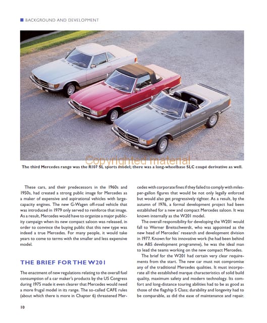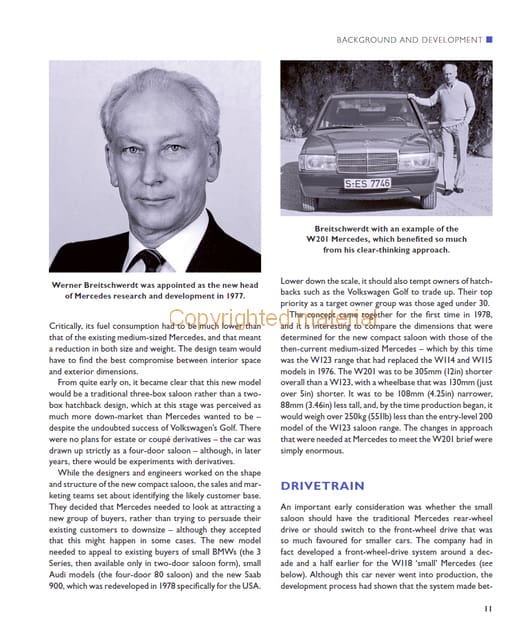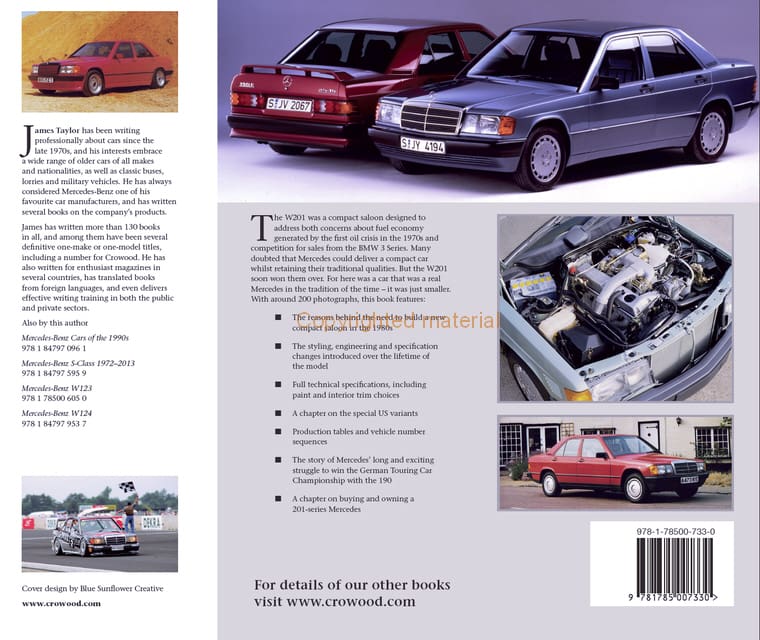 The W201 was a compact saloon designed to address both concerns about fuel economy generated by the first oil crisis in the 1970s and competition for sales from the BMW 3 Series. Many doubted that Mercedes could deliver a compact car whilst retaining their traditional qualities. But the W201 soon won them over. For here was a car that was a real Mercedes in the tradition of the time – it was just smaller. With around 200 photographs, the book features the reasons behind the need to build a new compact saloon in the 1980s. It covers the styling, engineering and specification changes introduced over the lifetime of the model; gives full technical specifications, including paint and interior trim choices and production tables and vehicle number sequences. The story of Mercedes’ long and exciting struggle to win the German Touring Car Championship with the 190 is covered. There is a chapter on the special US variants and, finally, a chapter on buying and owing a 201-series Mercedes.