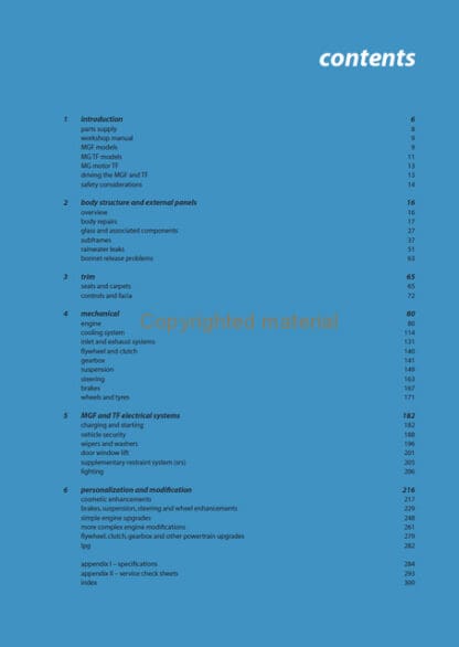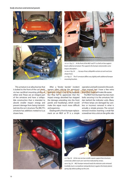 MGF and TF Restoration Manual provides the MGF or TF owner with a complete workshop guide to mechanical and body restoration for the cars. With the MGF in production between 1995 and 2001, and the MG TF until 2011, many of the cars have survived in a structurally and mechanically sound state, without the huge costs and complications of needing a complete body restoration that is so often the case with pre-1980 MGs.