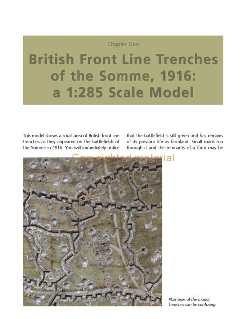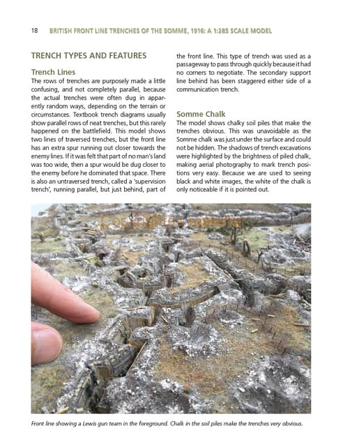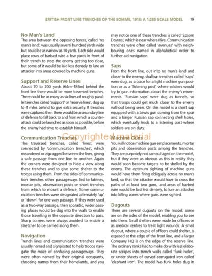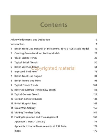 Aimed at both the beginner and more experienced modeller, this is a guide to the design, planning and creation of realistic models in 1:285 and 1:32 scales. Covering British, French and German trenches of the Western Front, this book includes the different construction, materials and repair methods used during the conflict. Each chapter includes the historical background, together with step-by-step instructions. With over 300 photographs, this book includes: why trenches were a necessity to save lives and how they adapted through the war; how to build models of British ‘ideal’ and typical trenches, a wet soil trench, improved shell hole, front line dugout, tunnels and mines, and a hospital tent. Construction advice is given for typical French and German trenches, together with a reversed German trench (modelled under British control) and a German concrete bunker. The creation of artillery models, realistic groundwork and plants is covered along with perfecting fine details such as tools, clothes, mess tins, shaving equipment, cigarette packets and letters from home. Finally, there is a guide to visiting the trenches today, a trench glossary and useful measurements at 1:32 scale.