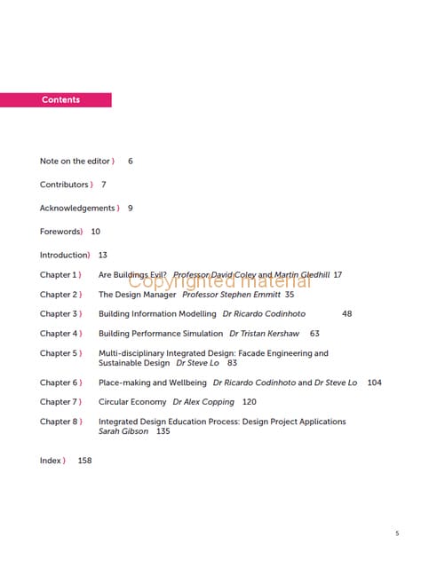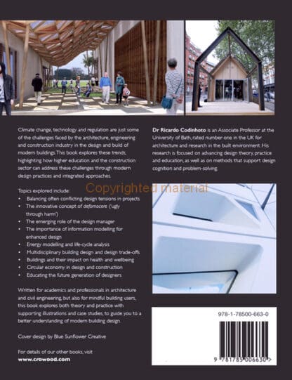 Climate change, technology, and regulation are just some of the challenges faced by the architecture, engineering and construction industry in the design and build of modern buildings. This book explores these trends, highlighting how higher education and the construction sector can address these challenges through modern design practices and integrated approaches. It explores the following topics: conflicting design tensions in projects; the concept of Defornocere (‘ugly through harm’); the emerging role of the design manager; buildings and their impact on health and wellbeing, and the importance of information modelling for enhanced design. Energy modelling and life-cycle analysis along with multidisciplinary building design and design trade-offs are covered too. With case studies and supporting illustrations this book will guide you to a better understanding of modern building design.
