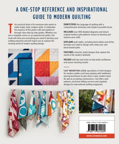 This practical book is for everyone who wants to make bright, bold, modern quilts. It celebrates the essence of this joyful craft and explains it through clear step-by-step guides. Whether you are a complete novice or an experienced quilter, this book will show you everything you need to develop your quilting expertise and will inspire you to explore the exciting world of modern quilting design.
