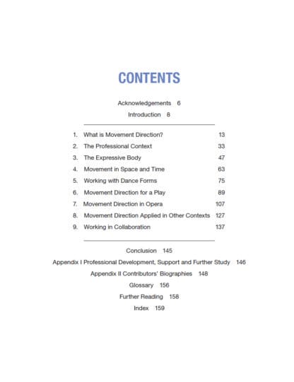 Movement Direction in contemporary theatre production is increasingly recognised and valued as a significant component of the expressive art of bodily communication in live performance. From scene changes, to character development, to dance sequences, movement direction underpins all that we see on stage and screen. This comprehensive book traces the creativity, skills, and knowledge essential to the movement director employed within the context of performance making. Key concepts are combined with insightful accounts from experienced practitioners and supported by creative tasks aimed to develop curiosity, skill, and deeper understanding of this valuable craft. Topics covered include: what is Movement Direction?; the expressive body; the actor’s process; movement in time and space; working with dance forms; context, research, and planning; Movement Direction for plays and opera and finally, working with directors.
