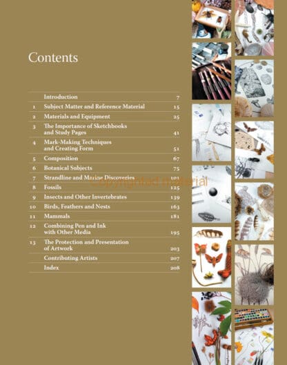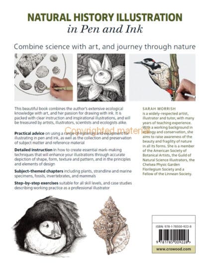 This beautiful book combines the author’s extensive ecological knowledge with art, and her passion for drawing with ink. It is packed with clear instruction and inspirational illustrations, and will be treasured by artists, illustrators, scientists and ecologists alike. Practical advice is given on using a range of materials and equipment for illustrating in pen and ink, as well as the collection and preservation of subject matter and reference material. Detailed instruction is given on how to create essential mark-making techniques that will enhance your illustrations through accurate depiction of shape, form, texture and pattern, and in the principles and elements of design. Subject-themed chapters include plants, strandline and marine specimens, fossils, invertebrates, and mammals. There are step-by-step exercises suitable for all skill levels, and case studies describing working practice as a professional illustrator.