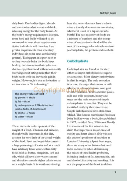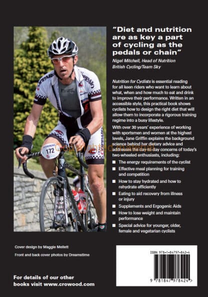 Nutrition for Cyclists is essential reading for all keen riders who want to learn about what, when and how much to eat and drink to improve their performance. This practical book shows cyclists how to design the right diet that will allow them to incorporate a rigorous training regime into a busy lifestyle. With over 30 years’ experience of working with sportsmen and women at the highest levels, Jane Griffin explains the background science behind her dietary advice and addresses the day-to-day concerns of today’s two-wheeled enthusiasts. Topics include: the energy requirements of the cyclist; effective meal planning for training and competition; how to stay hydrated and how to rehydrate efficiently; eating to aid recovery from illness or injury; supplements and Ergogenic Aids; how to lose weight and maintain performance and finally, special advice for younger, older, female and vegetarian cyclists.