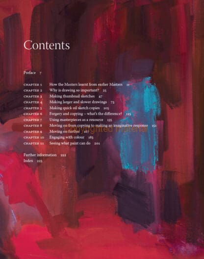 For centuries, artists have learnt from the art that came before them. This book explains how to make paint meaningful and imaginative responses to the works of the masters. There are step by step examples to illustrate how to get started and how to use thumbnail pencil sketches. Advice is given on how to make larger and slower drawings, and then oil-sketch copies of the masters’ work. The author studies the composition, rhythms and colours of the masters and uses their work as a source to practise and understand paintings, and as a springboard for your own discovery and invention. This book explores how a brave and imaginative use of colour can reinterpret paintings to achieve a greater and more expressive effect. Images from the earliest art to the twentieth century are included to feed your creative imagination, and examples of contemporary interpretations to show you the way. With over two hundred inspiring images, it is a unique guide to developing your own artistic voice while studying and enjoying some of the art world’s greatest treasures.