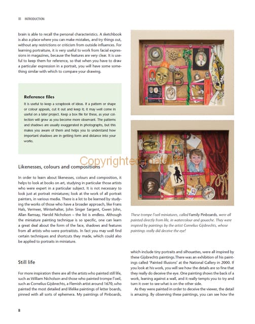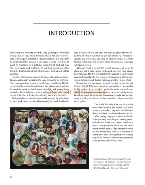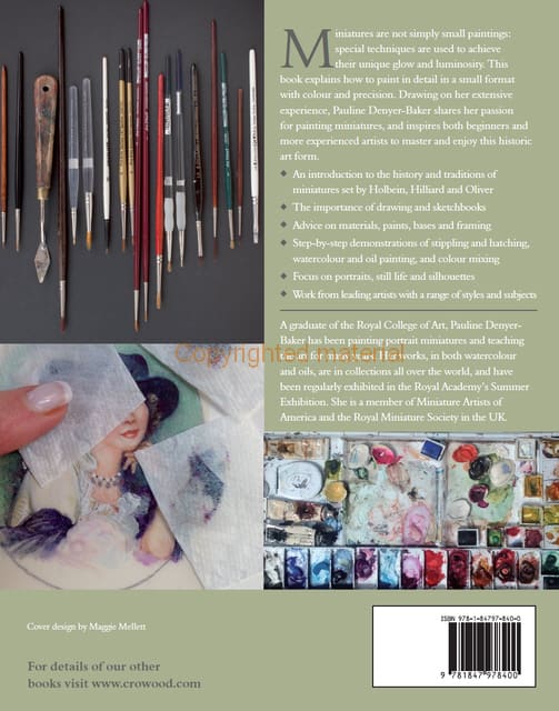 Miniatures are not simply small paintings: special techniques are used to achieve their unique glow and luminosity. This book explains how to paint in detail in a small format with colour and precision. It gives an introduction to the history and traditions of miniatures set by Holbein, Hilliard and Oliver. Advice is given on materials, paints, bases and framing and there are step-by-step demonstrations of stippling and hatching, watercolour and oil painting, and colour mixing. There is a focus also on portraits, still life and silhouettes. Drawing on her extensive experience, Pauline Denyer-Baker shares her passion for painting miniatures, and inspires both beginners and more experienced artists to master and enjoy this historic art form.