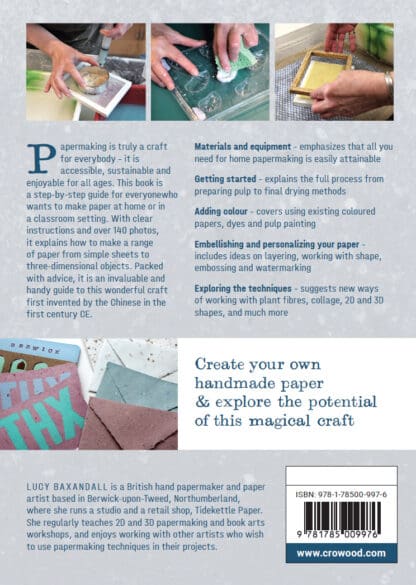 Papermaking is truly a craft for everybody – it is accessible, sustainable and enjoyable for all ages. This book is a step-by-step guide for everyone who wants to make paper at home or in a classroom setting. With clear instructions and over 140 photos, it explains how to make a range of paper from simple sheets to three-dimensional objects. Topics covered include advice on materials and equipment; getting started; adding colour; embellishing and personalizing your paper and exploring the various papermaking techniques. This is an invaluable and handy guide to this wonderful craft first invented by the Chinese in the first century CE.