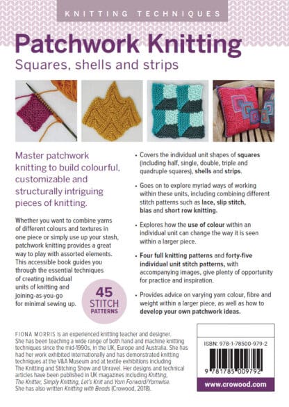 Whether you want to combine yarns of different colours and textures in one piece or simply use up some of your stash, patchwork knitting provides a great way to play with assorted elements. This accessible book guides you through the essential techniques of creating individual units of knitting and joining-as-you-go so that there is minimal sewing up to do once the work is completed. This latest addition to the Knitting Techniques series covers the individual unit shapes of squares (including half, single, double, triple and quadruple squares), shells and strips and goes on to explore myriad ways of working within these units, including combining different stitch patterns such as lace, slip stitch, bias and short row knitting. It explores how the use of colour within an individual unit can change the way it is seen within a larger piece. There are four full knitting patterns and forty-five individual unit stitch patterns, with accompanying images, give plenty of opportunity for practice and inspiration.