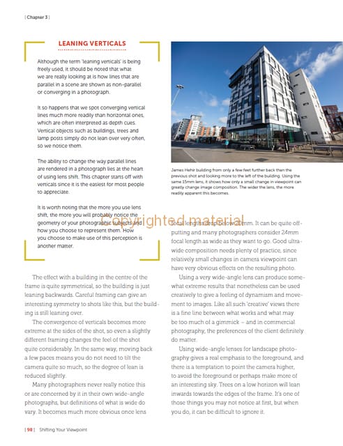 Tilt and shift lenses offer tremendous creative possibilities for users of digital SLR and mirrorless cameras. This practical book explains the techniques that will help you take better photos – photos that don’t distort or lose focus. Assessing the benefits and pitfalls of a range of lenses, adapters, software and editing techniques, it guides you through the practicalities of working with these lenses and gives you the skills to use them to best effect. With stunning examples throughout, this book gives an overview of the different lenses available, and tips on how adapters can give tilt/shift options when using old medium-format lenses. It gives advice on how simple lens shift can change the entire look of your photos, and techniques for using lens tilt for focus control and close-up working. Stunning examples show the use of tilt and shift lenses across a range of available focal lengths, both tripod-mounted and handheld.