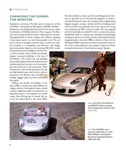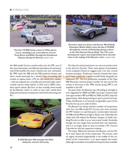 Porsche Boxster and Cayman follows the design and development of this mid-engined sports car and coupe family, from their origins in the company’s concerted racing activities in the 1950s and 1960s, to the drawing board, launch and systematic evolution through successive model ranges from 1996 to 2016. There are detailed profiles and evaluation of all Boxster and Cayman derivatives, including 986, 987, 981 and 718. Specifications of the various models are given including entry-level, S, GTS and GT-4. The special Limited Editions, such as the 550 Spyder 40th Anniversary models are also included. The book covers some of the author’s international driving experiences at the wheel of Boxster and Cayman including the Bilster Berg race circuit and Tour Auto. There is also an intriguing interview with successful racer Rebecca Jackson, who describes the techniques of Boxster racing and demonstrates the versatility of this best-handling of all Porsche sports cars.