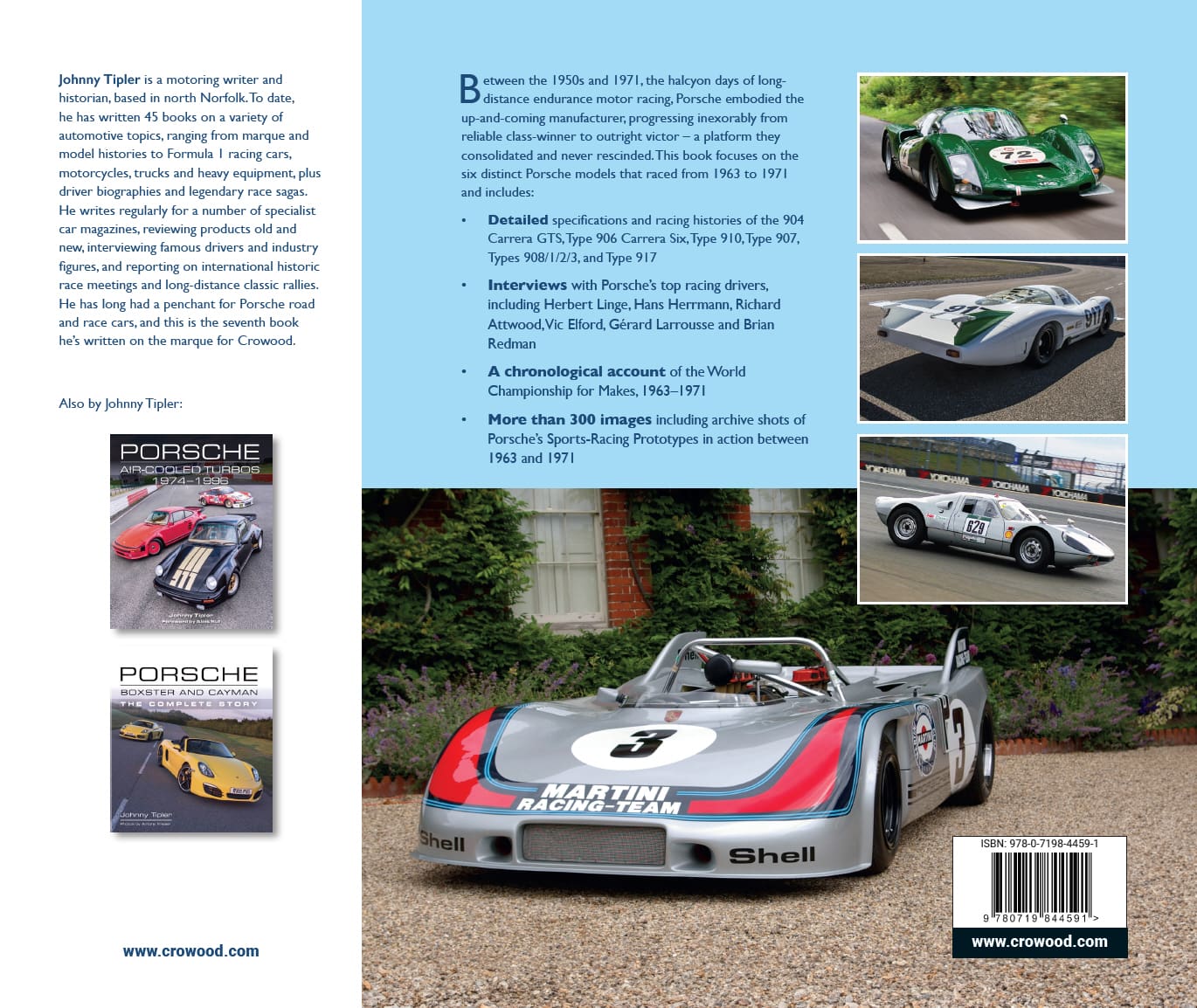 Johnny Tipler is a motoring writer and historian, based in north Norfolk. To date, he has written 45 books on a variety of automotive topics, ranging from marque and model histories to Formula 1 racing cars, motorcycles, trucks and heavy equipment, plus driver biographies and legendary race sagas. He writes regularly for a number of specialist car magazines, reviewing products old and new, interviewing famous drivers and industry figures, and reporting on international historic race meetings and long-distance classic rallies.