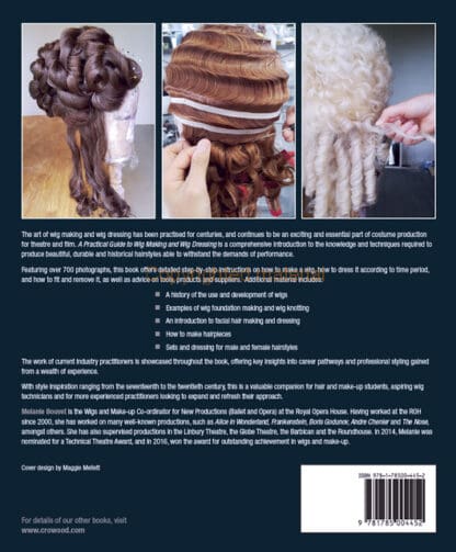 The art of wig making and wig dressing has been practised for centuries, and continues to be an exciting and essential part of costume production for theatre and film. With style inspiration ranging from the seventeenth to the twentieth century, A Practical Guide to Wig Making and Wig Dressing is a comprehensive introduction to the knowledge and techniques required to produce beautiful, durable and historical hairstyles able to withstand the demands of performance. Featuring over 700 photographs, this book offers detailed step-by-step instructions on how to make a wig, how to dress it according to time period, and how to fit and remove it, as well as advice on tools, products and suppliers. The work of current industry practitioners is showcased throughout the book, offering key insights into career pathways and professional styling gained from a wealth of experience.