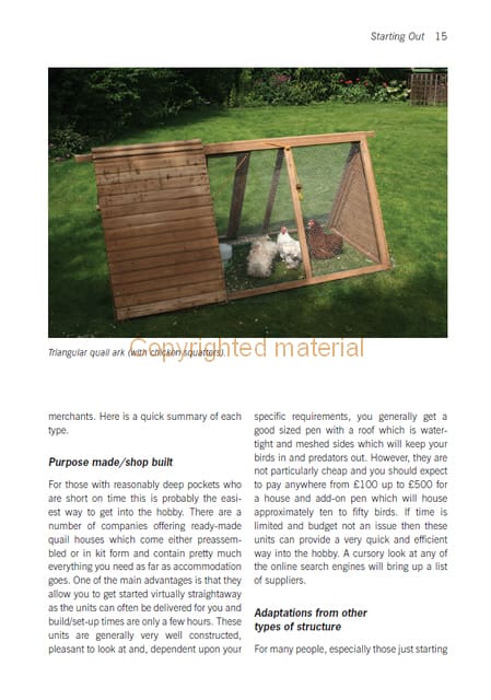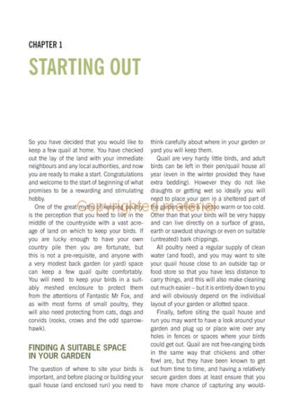 Practical Quail-keeping is a comprehensive guide for anyone who keeps quail or who is thinking about starting out. It covers all key aspects of responsible quail husbandry, and explains how to set up and equip your quail house and pens, how to care for your birds, and how to breed and raise young hatchlings through to healthy adulthood. The authors draw on their extensive experience as quail breeders to provide a unique insight into keeping these fascinating little birds.