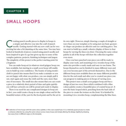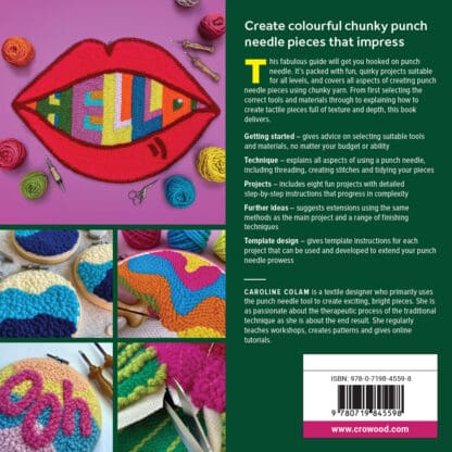 CAROLINE COLAM is a textile designer who primarily uses the punch needle tool to create exciting, bright pieces. She is as passionate about the therapeutic process of the traditional technique as she is about the end result. She regularly teaches workshops, creates patterns and gives online tutorials.