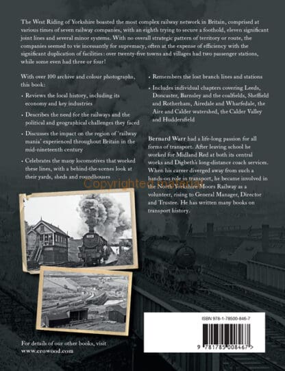 The West Riding of Yorkshire boasted the most complex railway network in Britain, comprised at various times of seven railway companies, with an eighth trying to secure a foothold, eleven significant joint lines and several minor systems. With no overall strategic pattern of territory or route, the companies seemed to vie incessantly for supremacy, often at the expense of efficiency with the significant duplication of facilities: over twenty-five towns and villages had two passenger stations, while some even had three or four! This book reviews the local history, including its economy and key industries. It describes the need for the railways and the political and geographical challenges they faced. It discusses the impact on the region of ‘railway mania’ experienced throughout Britain in the mid-nineteenth century. The many locomotives that worked these lines are celebrated, with a behind-the-scenes look at their yards, sheds and roundhouses. The lost branch lines and stations are remembered. Finally, there are individual chapters covering Leeds, Doncaster, Barnsley and the coalfields, Sheffield and Rotherham, Airedale and Wharfedale, the Aire and Calder watershed, the Calder Valley and Huddersfield.