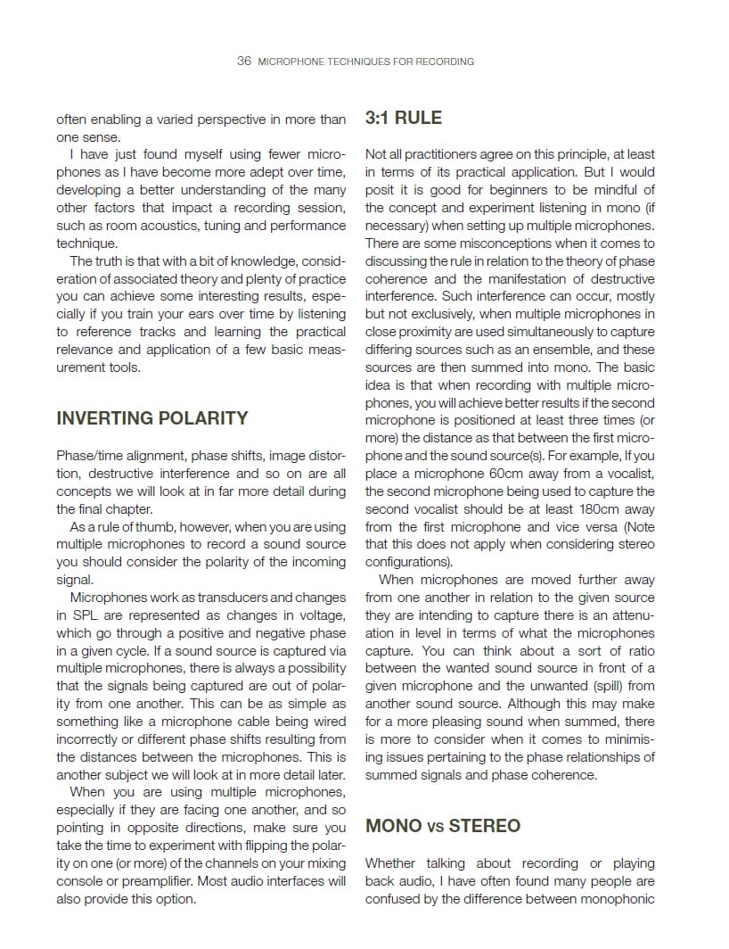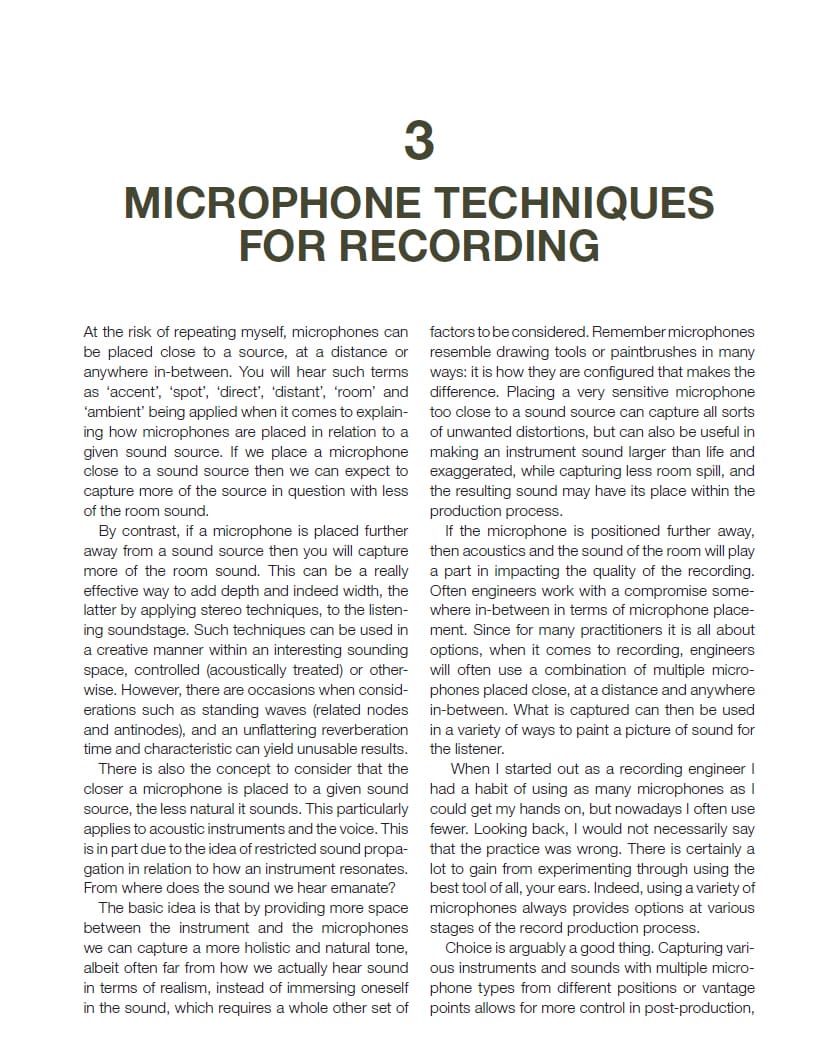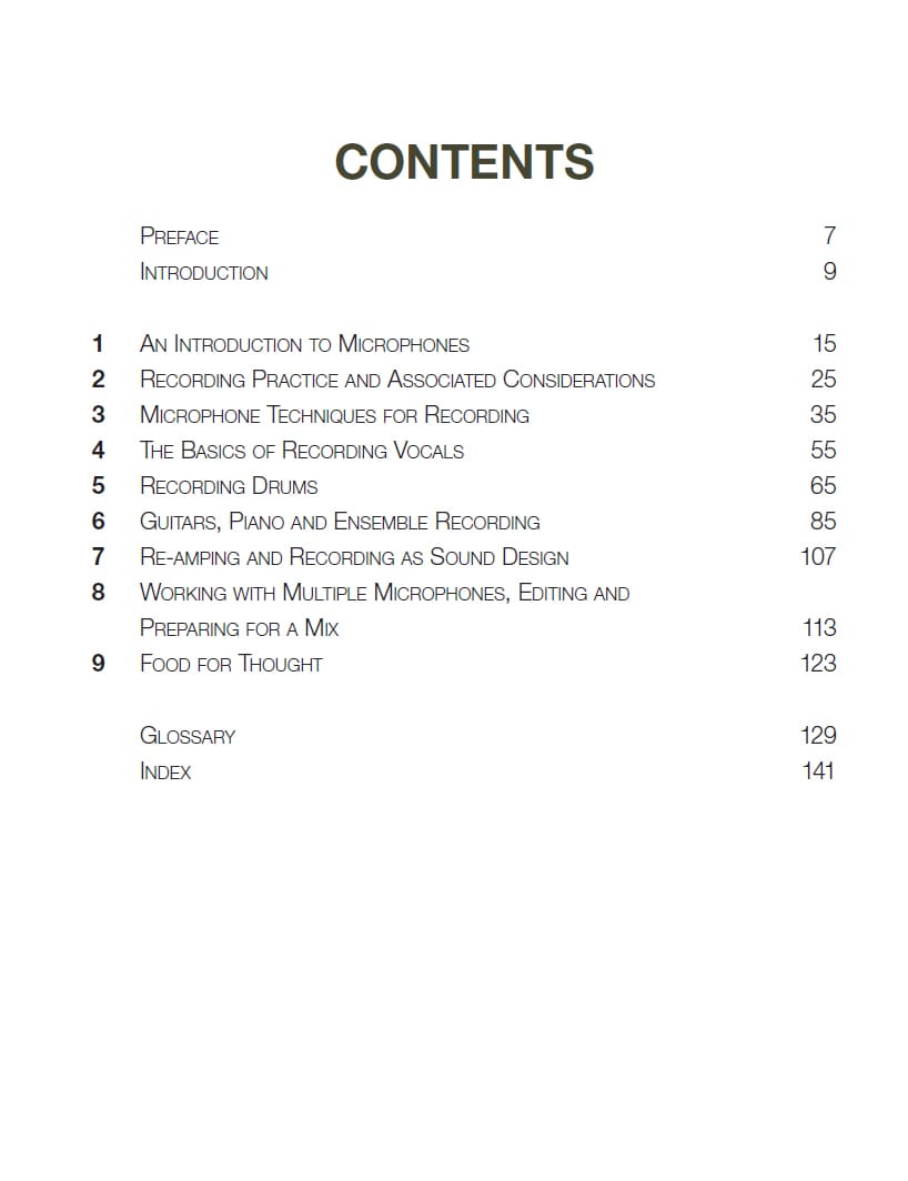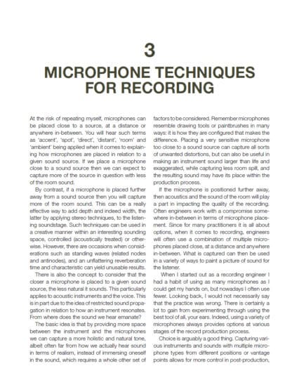 This book is for beginners, hobbyists and semi-professionals wanting to enhance and improve their knowledge of recording sound. Focusing on using microphones to capture a few instruments, both the theory and the practical considerations are explained in a concise and digestible manner.