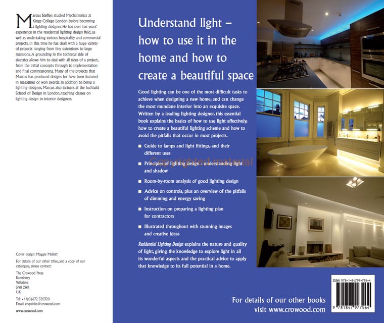 Good lighting is essential to a building. An effective design is not just about introducing light into a space, but rather an appreciation of how the space will be used. A good lighting design is so intertwined with the building that it is only noticed in its absence. This book introduces the tools of the lighting designer and explains how to produce a lighting design for a home. Looking at the nature of light and introducing different lamps and light fittings available, it explains the basics of lighting design and how to provide atmosphere through the play of light and shadow. It gives room-by-room analysis of good lighting design and gives advice on controls, plus an overview of the pitfalls of dimming and energy saving. Residential Lighting Design explains the nature and quality of light, how to use it in the home and how to create a beautiful space.