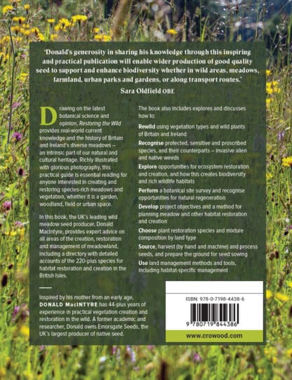 Drawing on the latest botanical science and opinion, and real-world practical knowledge, this richly illustrated practical guide is essential reading for anyone interested in creating and restoring species-rich meadows and wild vegetation, whether it is a garden, woodland, field, urban space or simply to gain a greater understanding of the history and renovation of Britain and Ireland’s rich and diverse meadows – an intrinsic part of our natural and cultural heritage. In this book, the UK’s leading wild meadow seed producer, Donald MacIntyre, provides expert advice on all areas of the creation, restoration and management of meadowland, including a directory with detailed accounts of the 220-plus species for habitat restoration and creation in the British Isles.