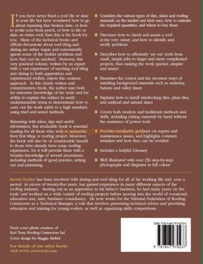 If you have never fixed a roof tile or slate before but have wondered how to go about repairing or replacing them, then this is the book for you. Many of the technical books about roof tiling and slating are rather vague and conveniently ignore some of the trickier problems and how they can be resolved. However, this practical volume, written by an expert with a vast experience of teaching roof tiling and slating to both apprentices and experienced roofers, rejects this cautious approach.