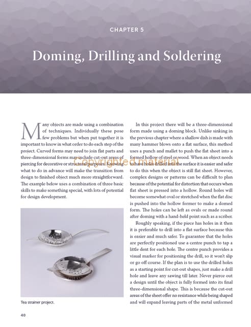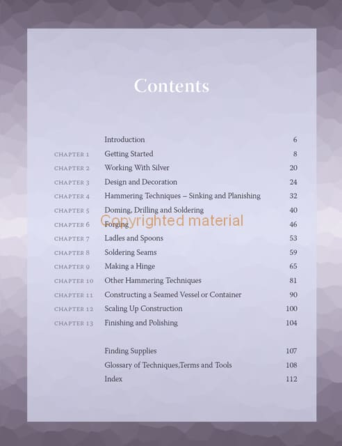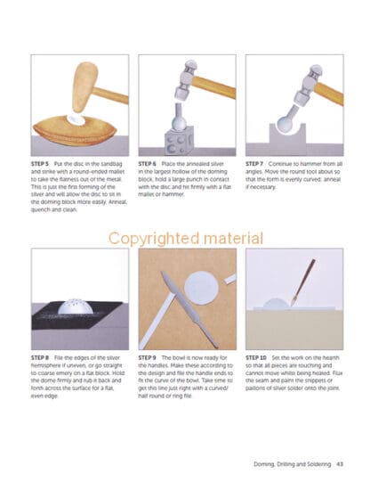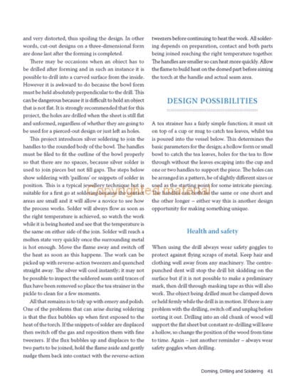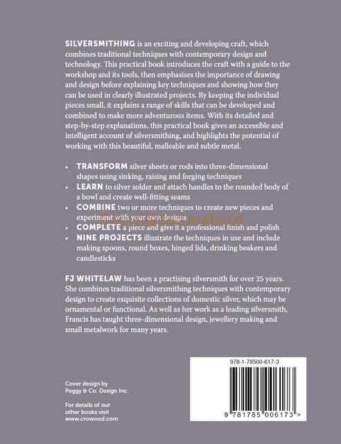 Silversmithing is an exciting and developing craft, which combines traditional techniques with contemporary design and technology. This practical book introduces the craft with a guide to the workshop and its tools, then emphasises the importance of drawing and design before explaining key techniques and showing how they can be used in clearly illustrated projects. By keeping the individual pieces small, it explains a range of skills that can be developed and combined to make more adventurous items. It discusses transforming silver sheets or rods into three-dimensional shapes using sinking, raising and forging techniques. It teaches how to silver solder and attach handles to the rounded body of a bowl and create well-fitting seams. Nine projects illustrate the techniques in use and include making spoons, round boxes, hinged lids, drinker beakers and candlesticks.